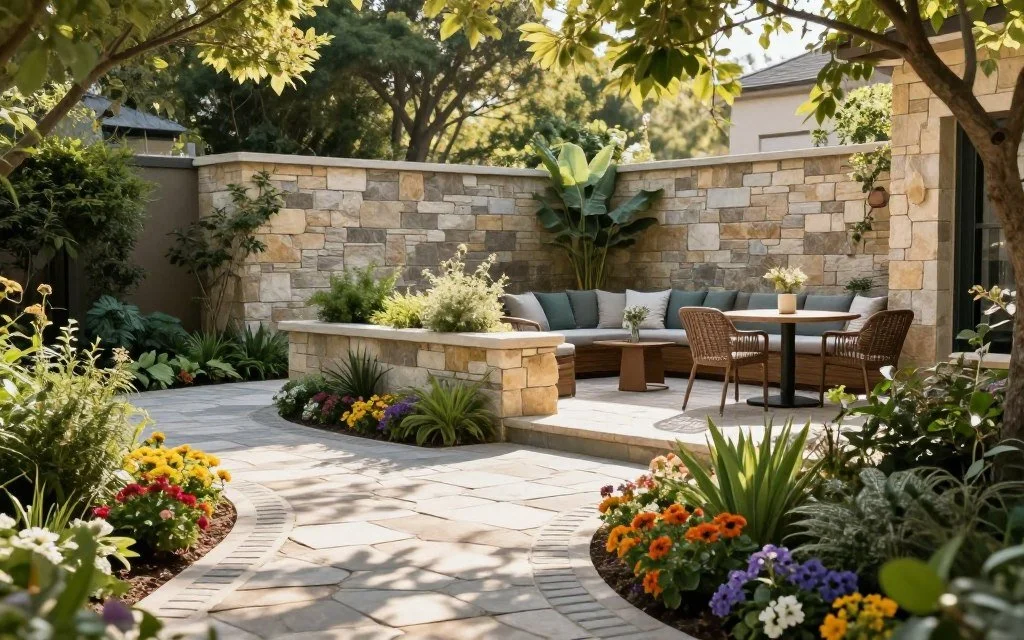 Retaining walls manage slopes and create usable planting beds. They turn challenging terrain into beautiful, functional areas. These structures can also provide additional seating when designed with wide caps.