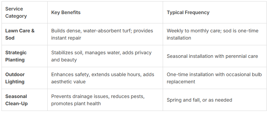 Yard clean-up keeps the space tidy and functional. Each service interlinks to support the others. A healthy landscape is a system where all parts work together.