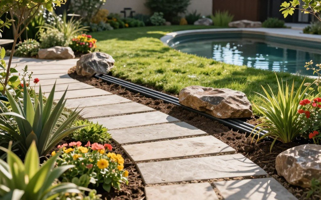 Their creative designs solve the water issue while enhancing your outdoor living space. This engineering sets the stage for the next phase: integrating hardscape for beauty and control.