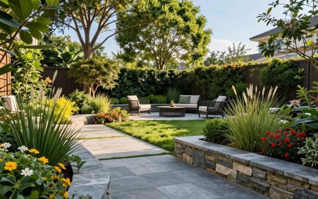 Your outdoor space transforms from a layout into an experience through the strategic use of plants and greenery. Softscape is the vital counterpoint to structural elements.