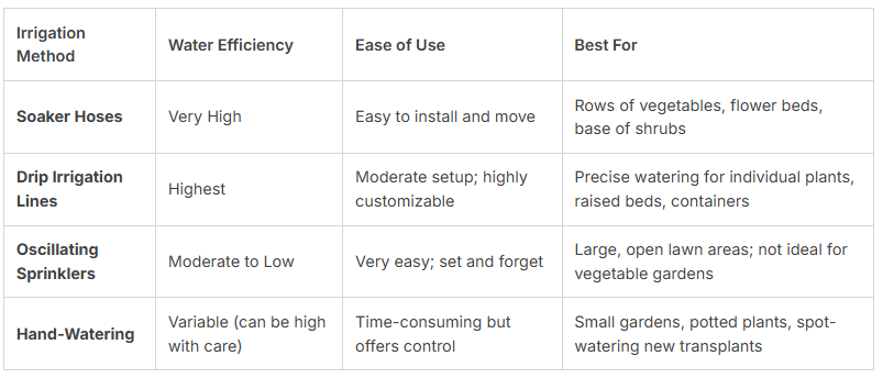 Different irrigation tools offer various benefits. Your choice affects water efficiency and ease of use. Consider your garden's size and layout.