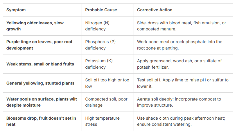 Plant symptoms often point directly to soil health. Yellowing leaves, stunted growth, and poor fruiting are clear signals. Learning to read these signs is a key skill.