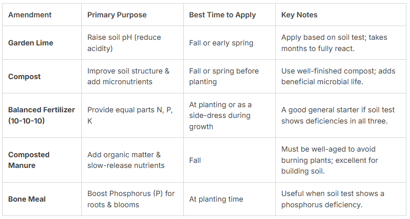 If your test shows acidic soil, you need to raise the pH. Garden lime is the standard amendment. Follow the test report's instructions for how much to use.