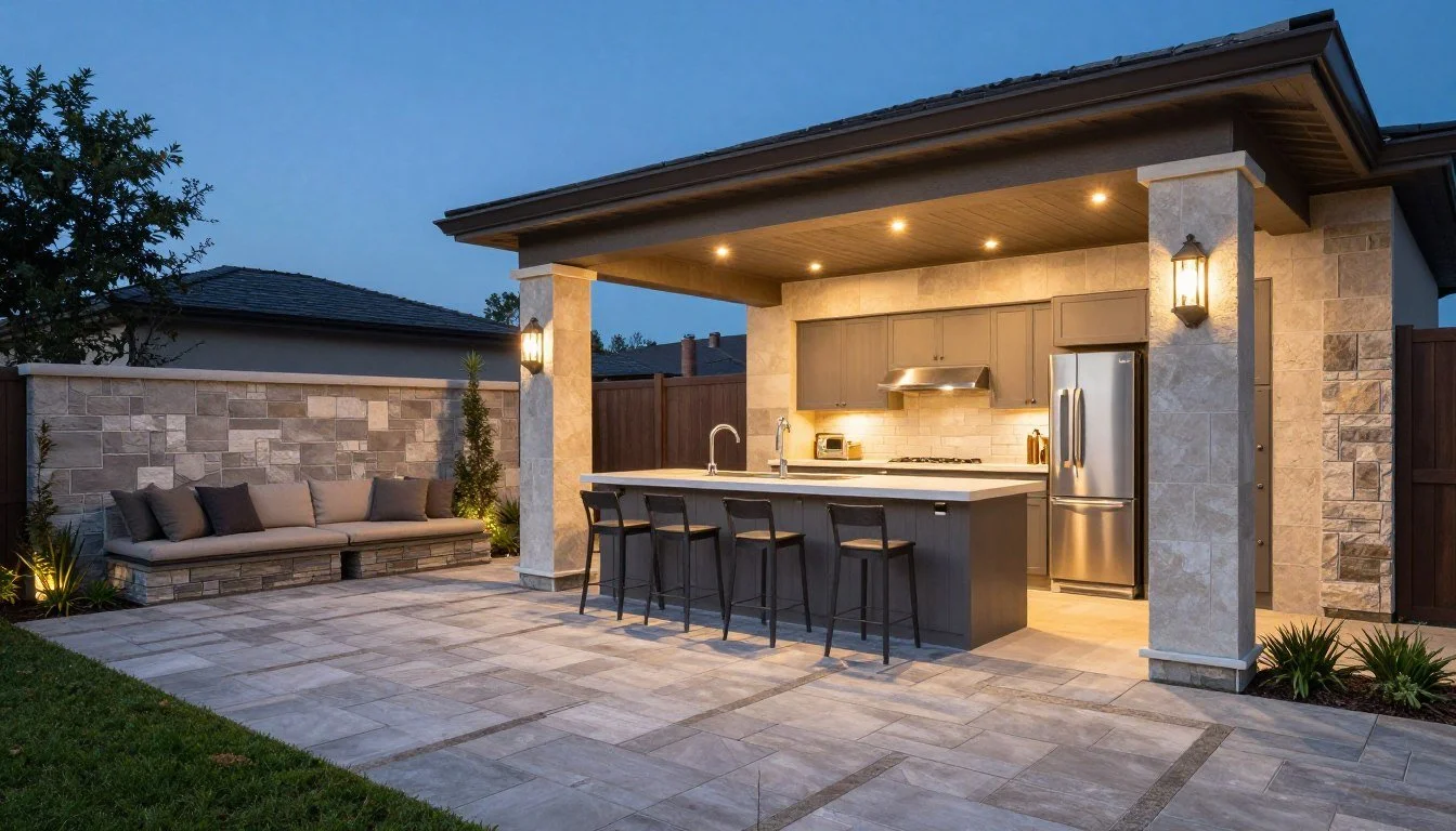 Build complete outdoor entertainment areas with cooking stations, dining spaces, and conversation areas. Integrate lighting and irrigation for year-round enjoyment and easy maintenance.