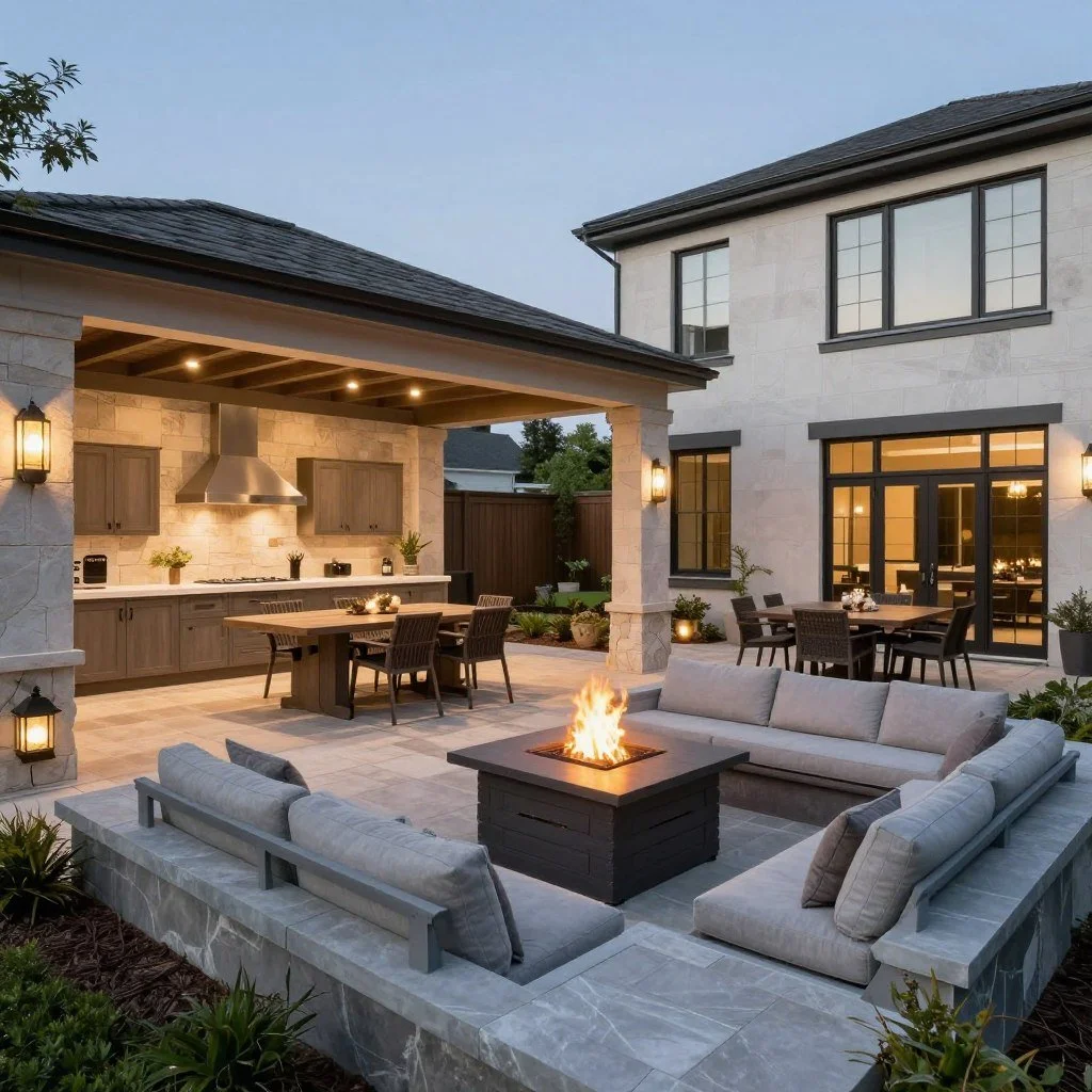 A custom patio becomes the heart of your outdoor living space. We design and build patios using premium materials that match your home's architecture and your lifestyle needs. Whether you prefer the classic elegance of natural stone or the versatility of modern pavers, we create outdoor spaces perfect for dining, relaxing, and entertaining.