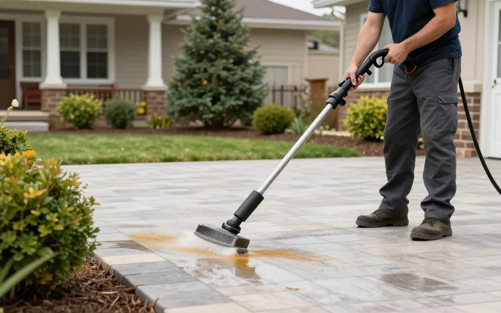 Different materials require specific cleaning approaches. Natural stone needs gentler treatment than concrete pavers. We provide detailed care instructions specific to your installation materials.